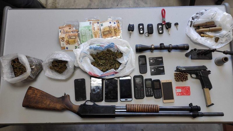 Συνελήφθησαν έξι (6) ημεδαποί, σε βάρος των οποίων σχηματίστηκε δικογραφία για τα κατά περίπτωση αδικήματα της σύστασης και συμμετοχής σε εγκληματική ομάδα καθώς και παραβάσεις της Νομοθεσίας περί ναρκωτικών ουσιών και όπλων. Επιπλέον, εξιχνιάστηκαν δύο υποθέσεις εμπρησμών οχημάτων. Στη δικογραφία περιλαμβάνεται ακόμα ένα ημεδαπός ως μέλος της εγκληματικής ομάδας.