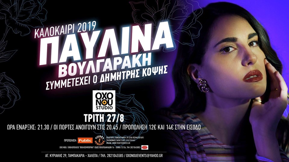 Προπώληση: ticketservices.gr, PUBLIC , τηλεφωνικά στο 2107234567, στο Cafe του στούντιο Όξω Νού , Βιβλιοπωλείο «Βιβλιοεμπορική»: Βολουδάκηδων 14, τηλ 2821045085