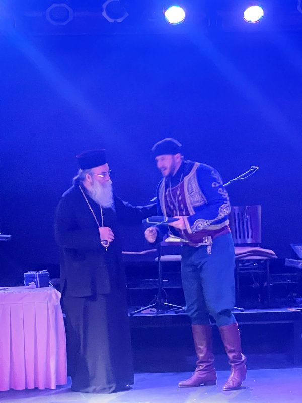 |Από καρδιάς ευχαριστούμε όλους σας”, σημείωσε ο Σεβ. Κισάμου & Σελίνου κ. Αμφιλόχιος, αναφερόμενος ονομαστικά στους συντελεστές της εκδήλωσης, προσφέροντας στον Καλλιτέχνη κ. Αντώνη Μαρτσάκη και τον ιδιοκτήτη του Κέντρου κ.Κυριάκο Παπασηφάκη Εικόνα του Οσίου Νικηφόρου και χειροποίητη ελιά, στα δε συγκροτήματα αναμνηστικά ενθυμήματα, με ιδιαίτερη αναφορά: «εις τον αγαπητό π. Χρύσανθο, ο οποίος επωμίστηκε το όλο βάρος της αποψινής βραδιάς και, με απόλυτη επιτυχία, έφερε εις πέρας την αποστολή του».