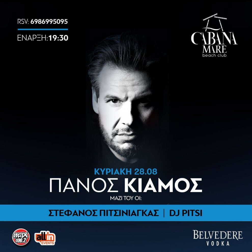 Την Κυριακή 28 Αυγούστου o μοναδικός Πάνος Κιάμος έρχεται να ταράξει την πόλη των Χανίων με τις αγαπημένες, σε όλους μας, επιτυχίες του, στο Cabana Mare beach club.