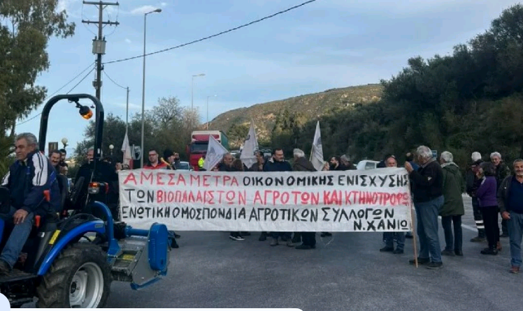 Με ανακοίνωση της η Ενωτική Ομοσπονδία Αγροτικών Συλλόγων Ν. Χανίων καλεί «όλους τους βιοπαλαιστές αγρότες και κτηνοτρόφους των Χανίων να μαζικοποιήσουν το μπλόκο στα “Μεγάλα Χωράφια”.