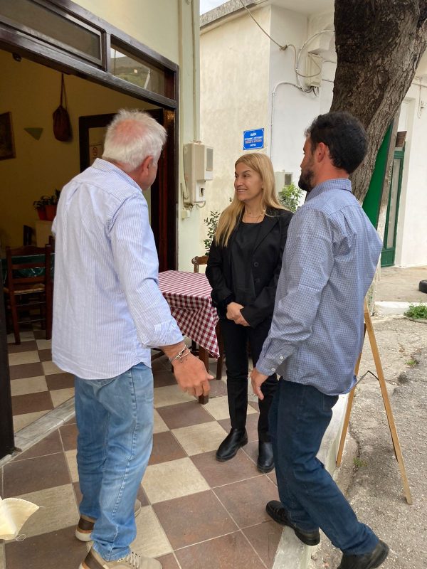 Την Τρίτη, 9 Μαΐου το απόγευμα, η κ. Βολουδάκη, υποψήφια βουλευτής της ΝΔ, επισκέφθηκε τα χωριά Κάντανο, Κουντούρα και Παλαιόχωρα Σελίνου, συναντήθηκε με κατοίκους, αγρότες, εργαζόμενους στους τομείς του τουρισμού, της εστίασης, και συζήτησε μαζί τους για τα υπαρκτά και σημαντικά προβλήματα της περιοχής.