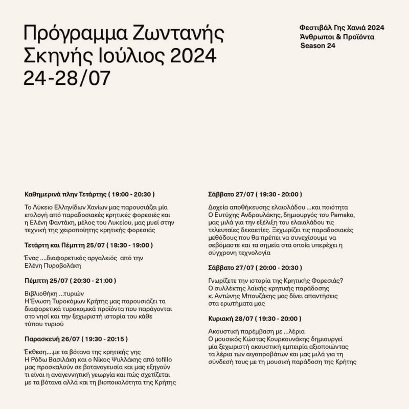 Από την Τετάρτη μέχρι και το Σάββατο όλοι όσοι αγαπάμε τους χειροποίητους θησαυρούς της Κρήτης, τα ήθη και τις παραδόσεις, τα σύμβολα και τις αξίες της θα είμαστε στο ΦΕΣΤΙΒΑΛ ΓΗΣ στο 1οΓυμνάσιο Χανίων.