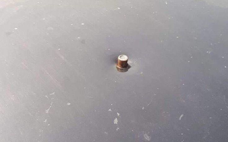 Η σφαίρα όπως φαίνεται και στη φωτογραφία έχει καρφωθεί και μάλιστα τελείως κάθετα στην οροφή αυτοκινήτου. Φανταστείτε στη θέση που βρισκόταν το αυτοκίνητο, να βρισκόταν κάποιος άνθρωπος.