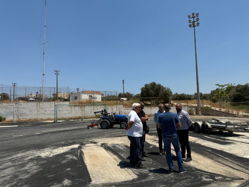 Τον αθλητικό χώρο επισκέφτηκαν πρόσφατα οι Αντιδήμαρχοι Αθλητισμού, Στέλιος Μιχαηλάκης, Τεχνικών Έργων, Μιχάλης Καλογριδάκης και Οικονομικών, Τάσος Αλόγλου, προκειμένου να διαπιστώσουν από κοντά τις ανάγκες και τις ελλείψεις των εγκαταστάσεων, ώστε ο χώρος να ανταποκρίνεται στις σύγχρονες απαιτήσεις των αθλητών, των συλλόγων και των πολιτών που τον χρησιμοποιούν καθημερινά.