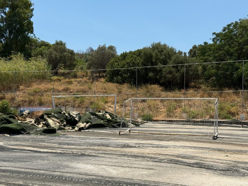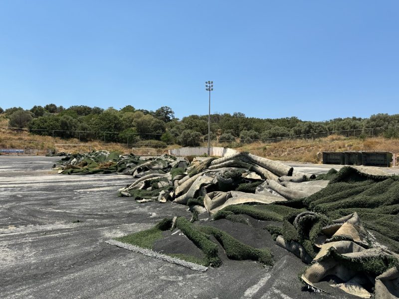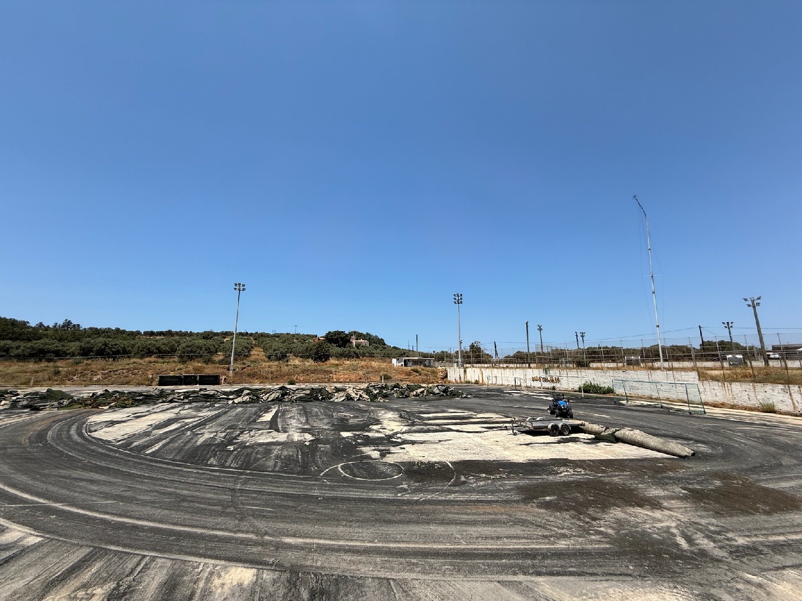 Οι εργασίες που έχουν πραγματοποιηθεί έως τώρα περιλαμβάνουν την αποξήλωση του συνθετικού χλοοτάπητα, στο μεγάλο γήπεδο της Μοναχής Ελιάς επιφάνειας 6,5 στρεμμάτων αλλά και στα δύο μικρότερα γήπεδα 5×5, ενώ ο νέος χλοοτάπητας που θα τοποθετηθεί μέσα στις επόμενες μέρες, βρίσκεται ήδη στον χώρο.