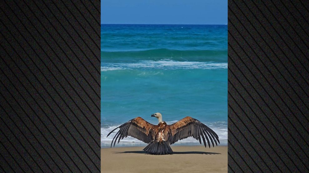 Ο μεγάλος γύπας βρέθηκε μπροστά στη θάλασσα και, μη μπορώντας να πετάξει, κατέληξε ανάμεσα στα κύμματα.