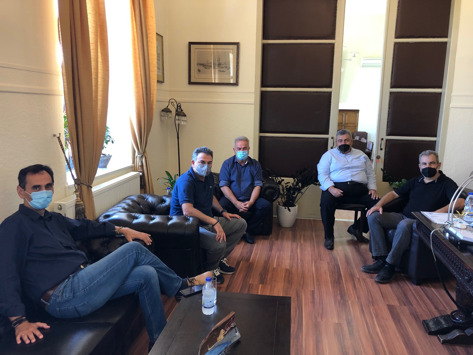 Επίσκεψη στον Αντιπεριφερειάρχη Χανίων κ. Νίκο Καλογερή πραγματοποίησαν σήμερα, Παρασκευή 15 Ιουλίου 2022, Μέλη του Διοικητικού Συμβουλίου της Ένωσης Ποδοσφαιρικών Σωματείων Χανίων καισυγκεκριμένα ο Πρόεδρος της ΕΠΣ κ. Κώστας Κωνσταντινίδης καιο Γενικός Γραμματέας κ. Νίκος Κασιμάτης. Στη συνάντηση συμμετείχαν οι Αντιδήμαρχος Χανίων στα θέματα Αθλητισμού κ. Στέλιος Μιχαηλάκης και ο Αντιδήμαρχος Χανίων με ευθύνη τη Δημοτική Ενότητα Σούδας κ. Μιχάλης Τσουπάκης.