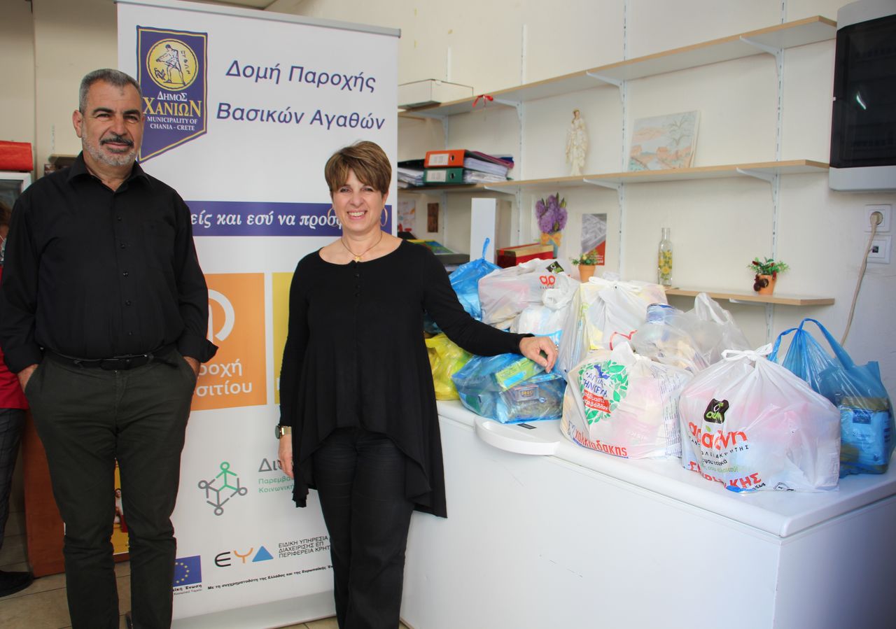 Τα τρόφιμα, που συγκεντρώθηκαν αντί εισιτηρίου, κατά τη διάρκεια του φιλικού αγώνα ποδοσφαίρου, που πραγματοποιήθηκε στις 8 Μαΐουστο Γήπεδο των Νεροκούρου, παραδόθηκαν σήμερα, Πέμπτη 12/5/2022, στη Δομή Παροχής Βασικών Αγαθών – Κοινωνικό Παντοπωλείο του Δήμου Χανίων.