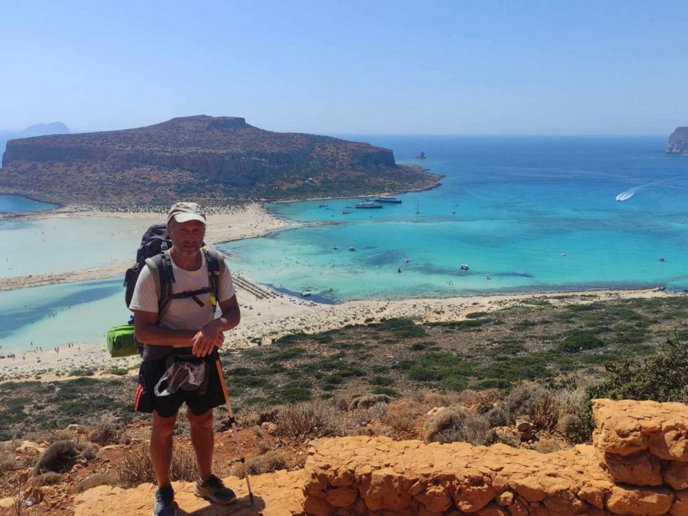 «Είναι ωραία να τελειώνεις!!! Ξεκίνημα από Μονή Τοπλού και τερματισμός στον Μπάλο Χανίων, διέσχισα όλη την Κρήτη καλύπτοντας απόσταση 541 χιλιόμετρων, πολύ δύσκολο εγχείρημα γι’ αυτή την εποχή με τόση ζέστη, αλλά το απόλαυσα στο μέγιστο. Διέσχισα την Κρήτη που αγαπώ, την Κρήτη μου! Γνώρισα Ανθρώπους που με εντυπωσίασαν, απλούς, που μου πρόσφεραν, χωρίς να περιμένουν αντάλλαγμα και τους ευχαριστώ, που έτυχαν στο διάβα μου»: διαβάζω τα λόγια, με τα οποία ανακοίνωσε την επιτυχή κατάληξη του δύσκολου εγχειρήματος της διάβασης του ευρωπαϊκού μονοπατιού (Ε4)* της Κρήτης μέσα σε 16 μόνο μέρες (από 26 Ιουνίου ως 11 Ιουλίου) ο Θανάσης Κολοτούρος, μέλος του Δ.Σ. του Ορειβατικού Συλλόγου Αγίου Νικολάου!
