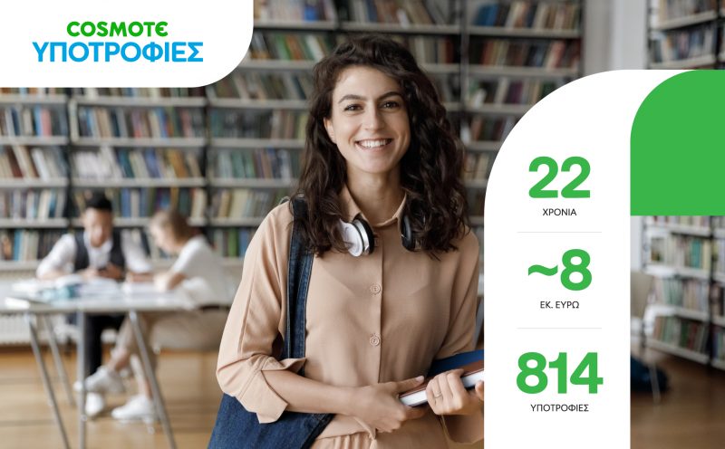 Σε 30 πρωτοετείς φοιτητές ελληνικών πανεπιστημίων απονεμήθηκαν οι Υποτροφίες COSMOTE συνολικής αξίας άνω των €500.000 για το ακαδημαϊκό έτος 2023-2024. Το Πρόγραμμα Υποτροφιών COSMOTE, που συμπληρώνει είκοσι δύο χρόνια, παρέχει οικονομική ενίσχυση για όλα τα έτη σπουδών σε φοιτητές που αντιμετωπίζουν οικονομικές και κοινωνικές δυσκολίες, για να μπορέσουν να πραγματοποιήσουν τις σπουδές τους. Πρόκειται για το μεγαλύτερης διάρκειας πρόγραμμα κοινωνικής συνεισφοράς της COSMOTE, συνολικού ύψους περίπου 8 εκατ. ευρώ, το οποίο έχει στηρίξει μέχρι σήμερα 814 φοιτητές.